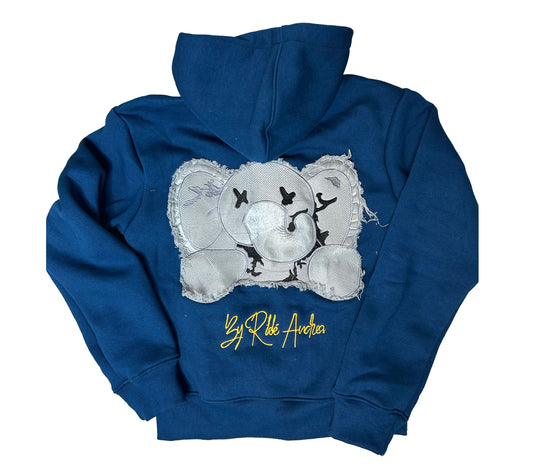SOLD OUT- NAVY Distress Stuffed Elephant Zip Hoodie