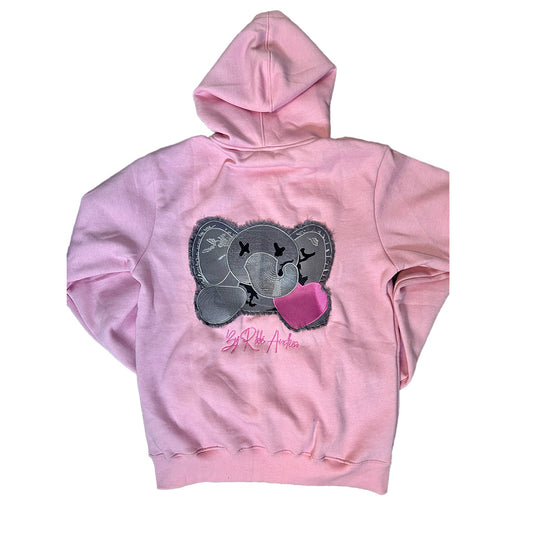 PINK ON PINK Distress Stuffed Elephant Zip Hoodie (Unisex)